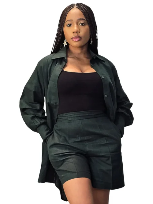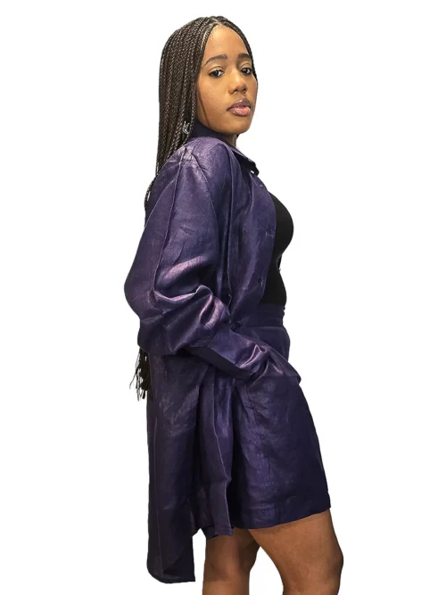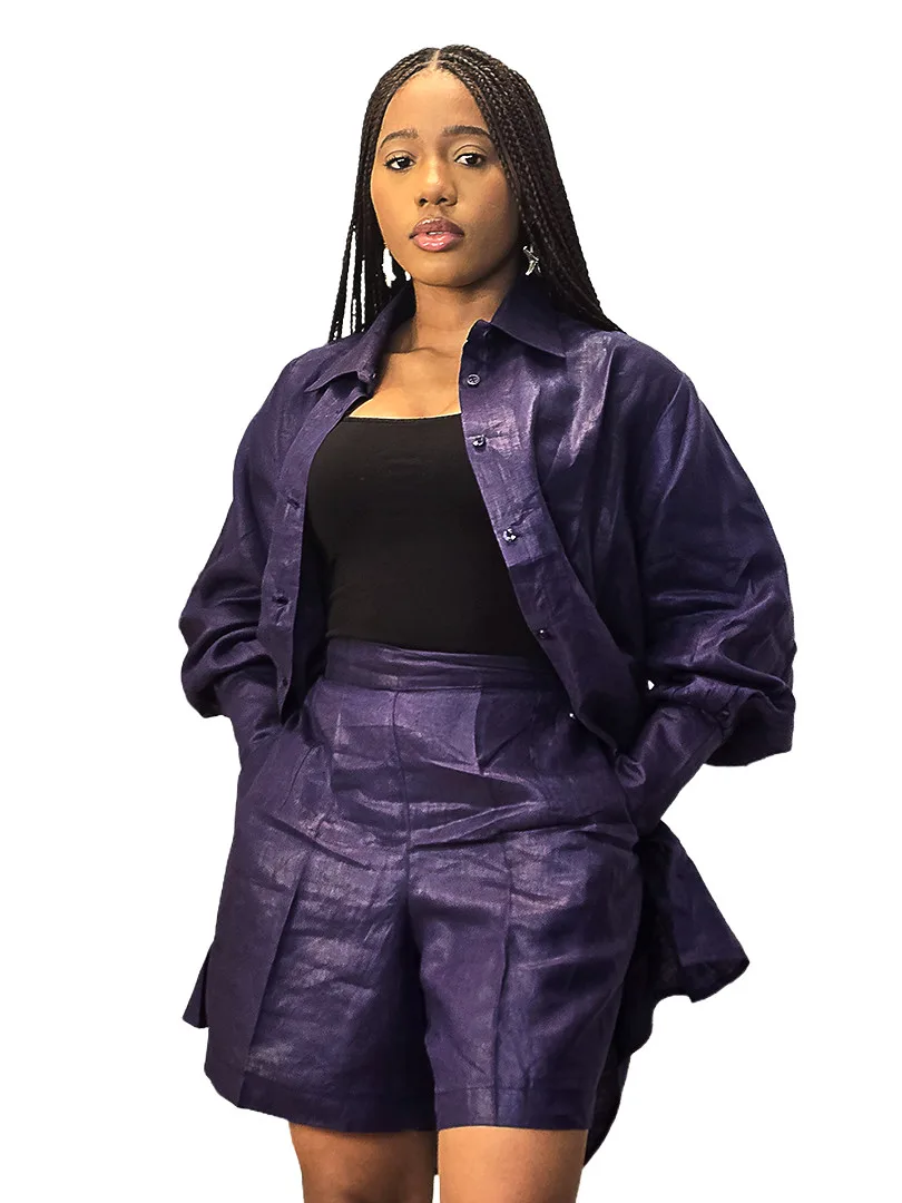 Cet ensemble en lin cassé incarne une esthétique à la fois minimaliste et sophistiquée. Confectionné dans un lin léger et respirant, il offre un confort absolu tout en conservant une allure chic et structurée. La chemise, à la coupe fluide et légèrement oversize, porte une touche moderne et effortless. La culotte, délicatement coupée et assortie, souligne la silhouette avec subtilité tout en garantissant aisance et liberté de mouvement. Ses différentes teintes, douces et intemporelles, s’intègrent parfaitement à une garde-robe épurée et raffinée.